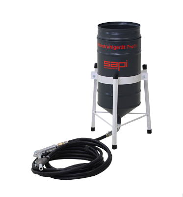 Стандартное исполнение в комплекте с баком, ситом, пистолетом и воздушным фильтром, с соплами для материала и воздуха, 3 м шланг для материала и 5 м воздушный шланг с быстроразъемным подключением. Для гранулированного шлака и кварца. Размер зерна до 1 мм.